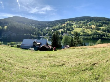 Původně roubená chalupa s užitnou plochou 220 m2. Pozemek 36.000 m2 s vlastní cestou a příjezdem po hrázi, chráněným závorou.